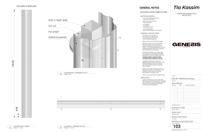 As the Lead Set Designer, I produced the pictured design intent deck as the instructional documentation for the construction of columns. This design was meant to disassemble and reassemble for transportation before and after the show.